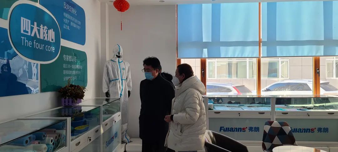 2021年1月27日中韓自貿區書記到廠慰問吉林弗朗醫療科技有限公司李總熱情接待并引導書記參觀十萬級凈化車間,以及弗朗員工優良的精神面貌。