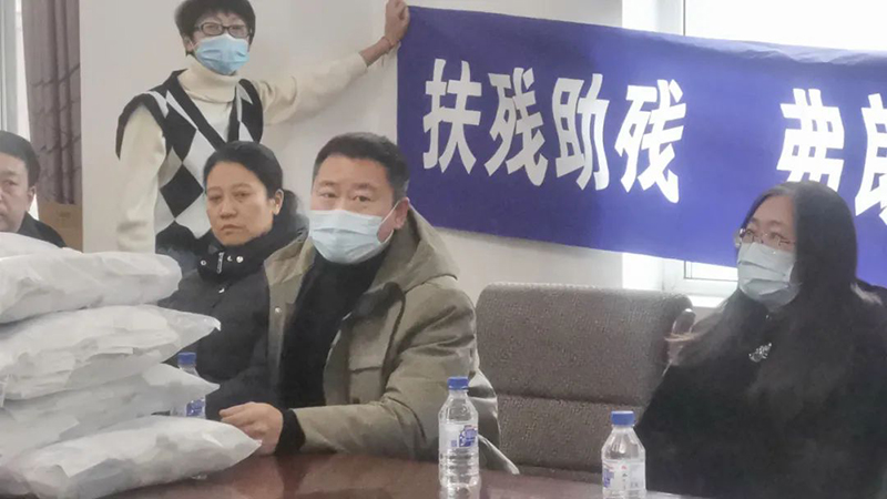 二道區殘聯理事長李季介紹了二道區殘疾人的情況,二道區比較特殊,貧苦戶多,殘疾人多,確實需要社會各界的關注和關愛,我代表二道區殘聯感謝八里堡街道和街道殘聯專辦為二道區殘疾人付出的一切努力,也感謝弗朗醫療在疫情防控期間,給我們送來防疫口罩,在春節來臨之際,祝大家身體健康,事事如意。