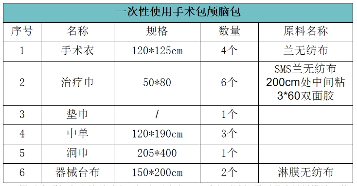 一次性使用(yong)手術(shu)包顱腦(nao)包