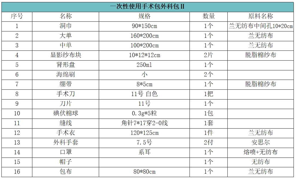一次(ci)性使用手術(shu)包(bao)外科包(bao)Ⅱ