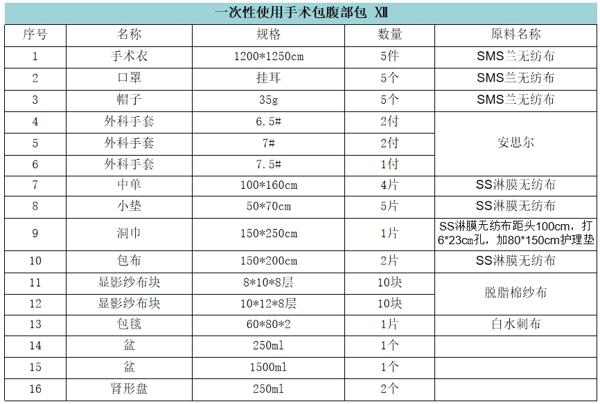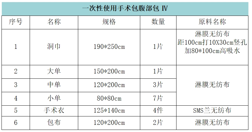 一次(ci)性使用手術包腹(fu)部(bu)包 Ⅳ