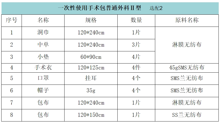 常用于普外科常規手術,適用于各種手術。產品材質柔軟舒適,具有阻隔性好,落絮少、不反光等優點。配置組合科學合理,方便臨床使用和操作。