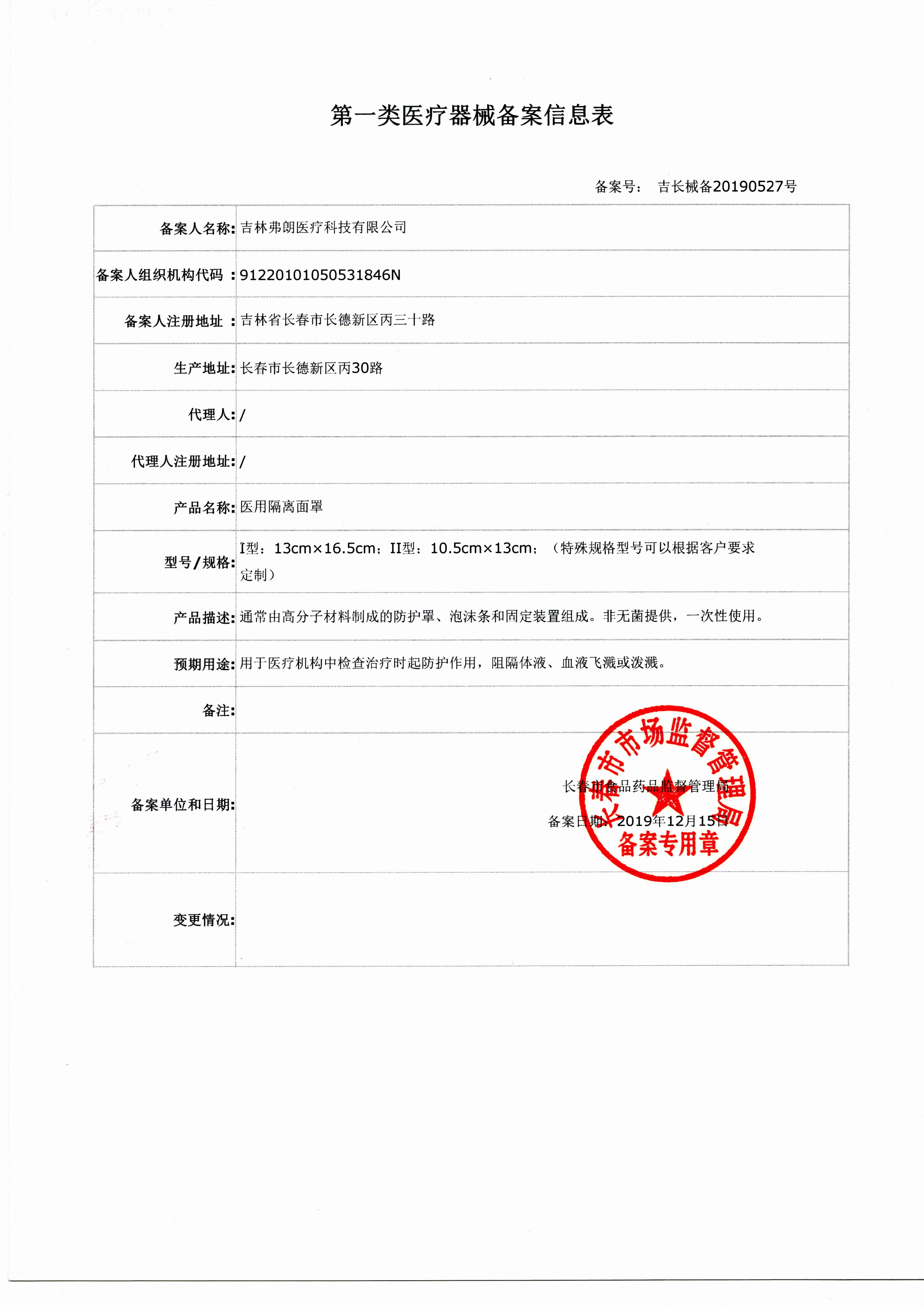 [生產企業備案證編號]吉長食藥(yao)監械生(sheng)產備20150010號