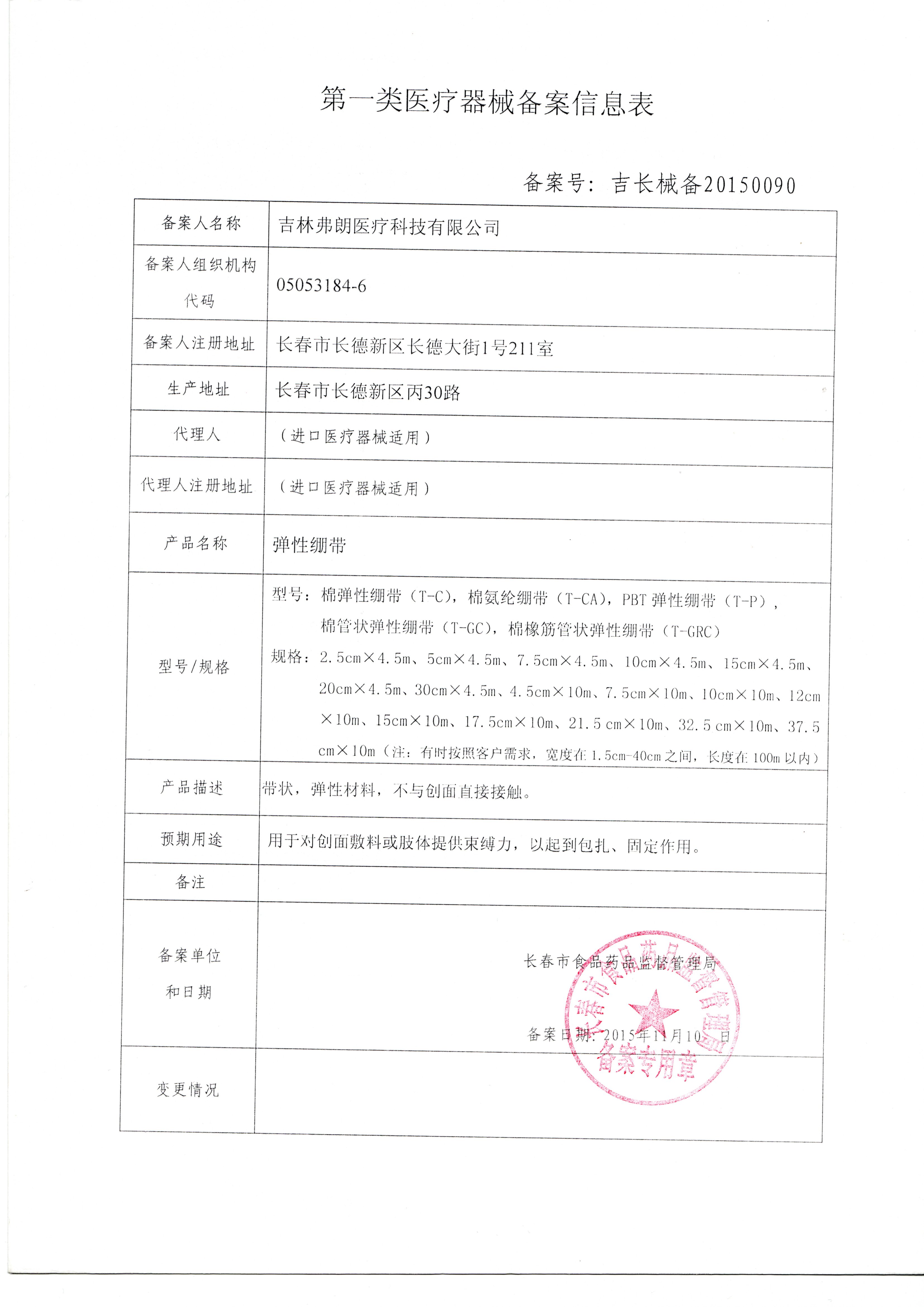[注(zhu)冊(ce)人/企(qi)業名稱]吉林弗朗醫療(liao)科(ke)技有限公司