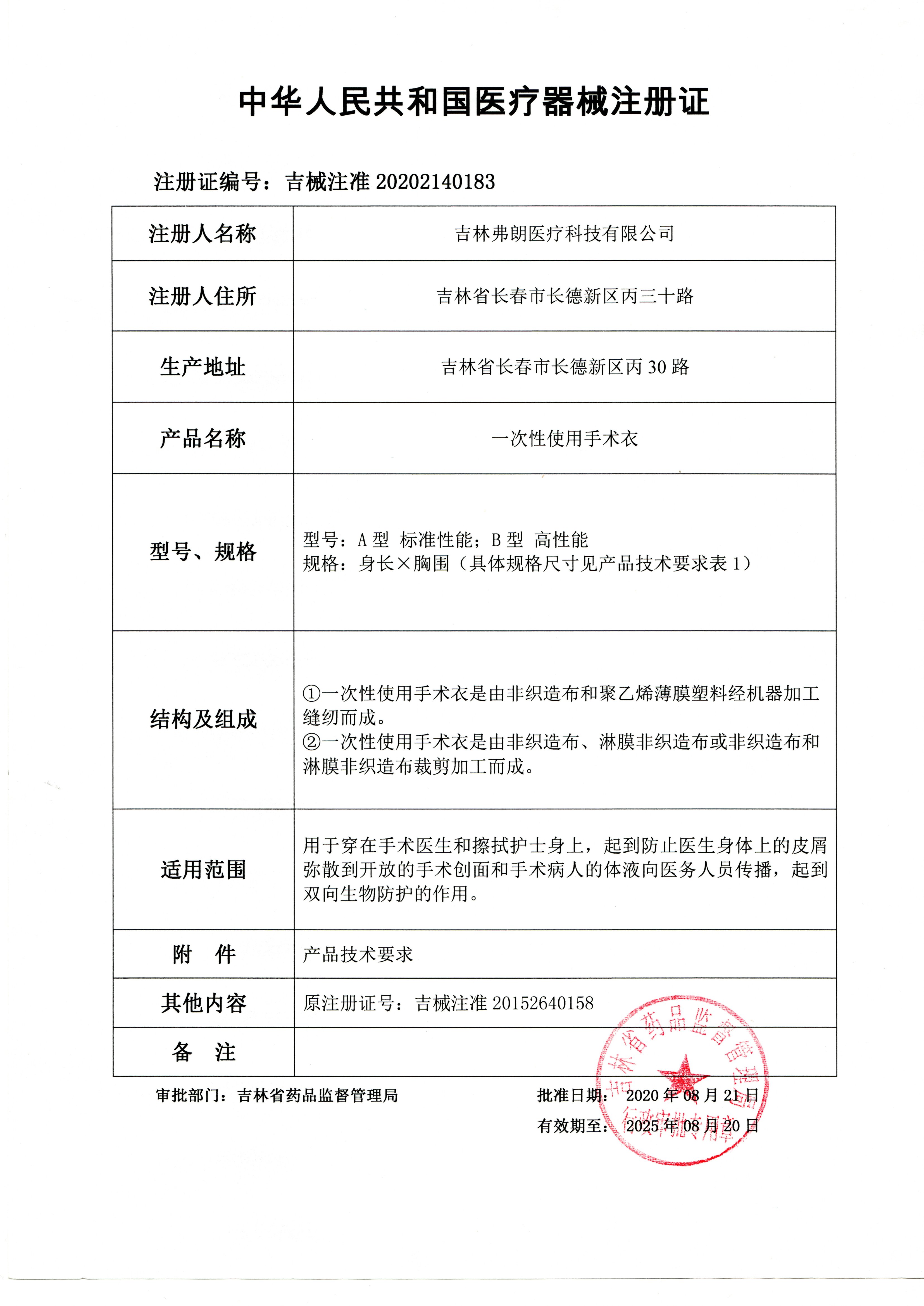 [注冊人/企(qi)業(ye)名稱]吉(ji)林弗朗醫療科技有限公司
