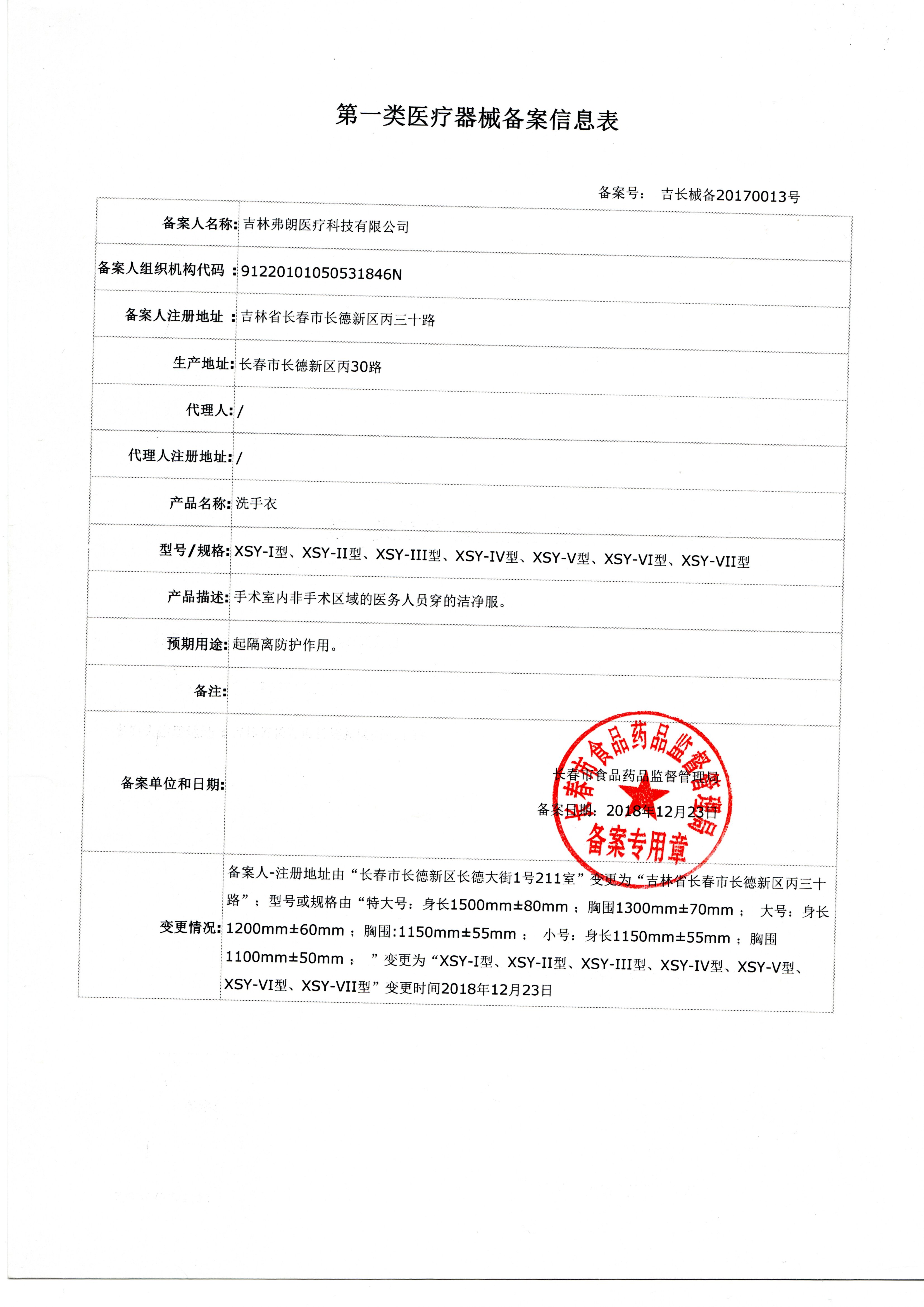 [注冊人/企(qi)業名稱]吉林弗朗醫(yi)療科技有限公司