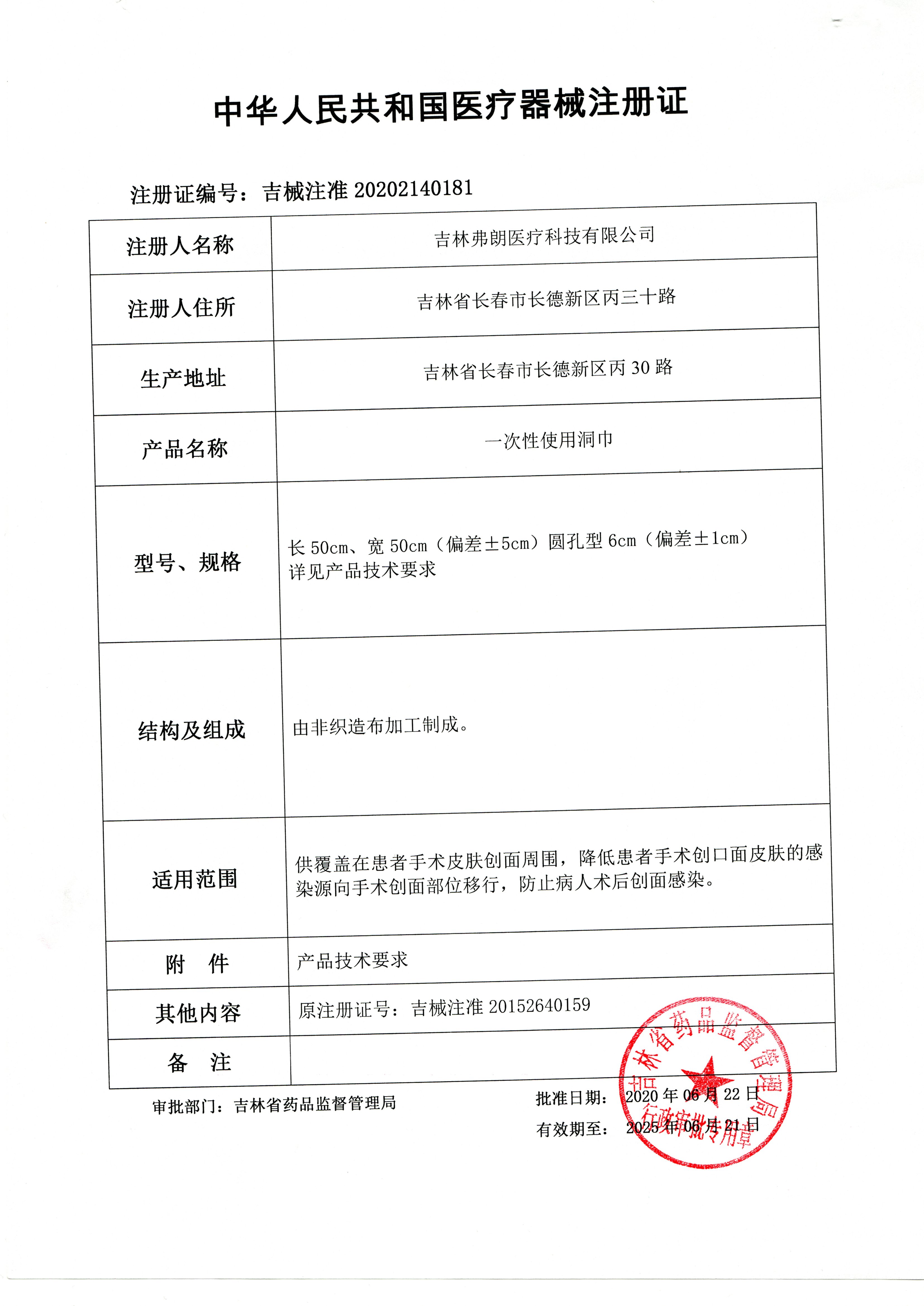 [注冊人/企業名(ming)稱]吉(ji)林弗朗(lang)醫療(liao)科技有限公司